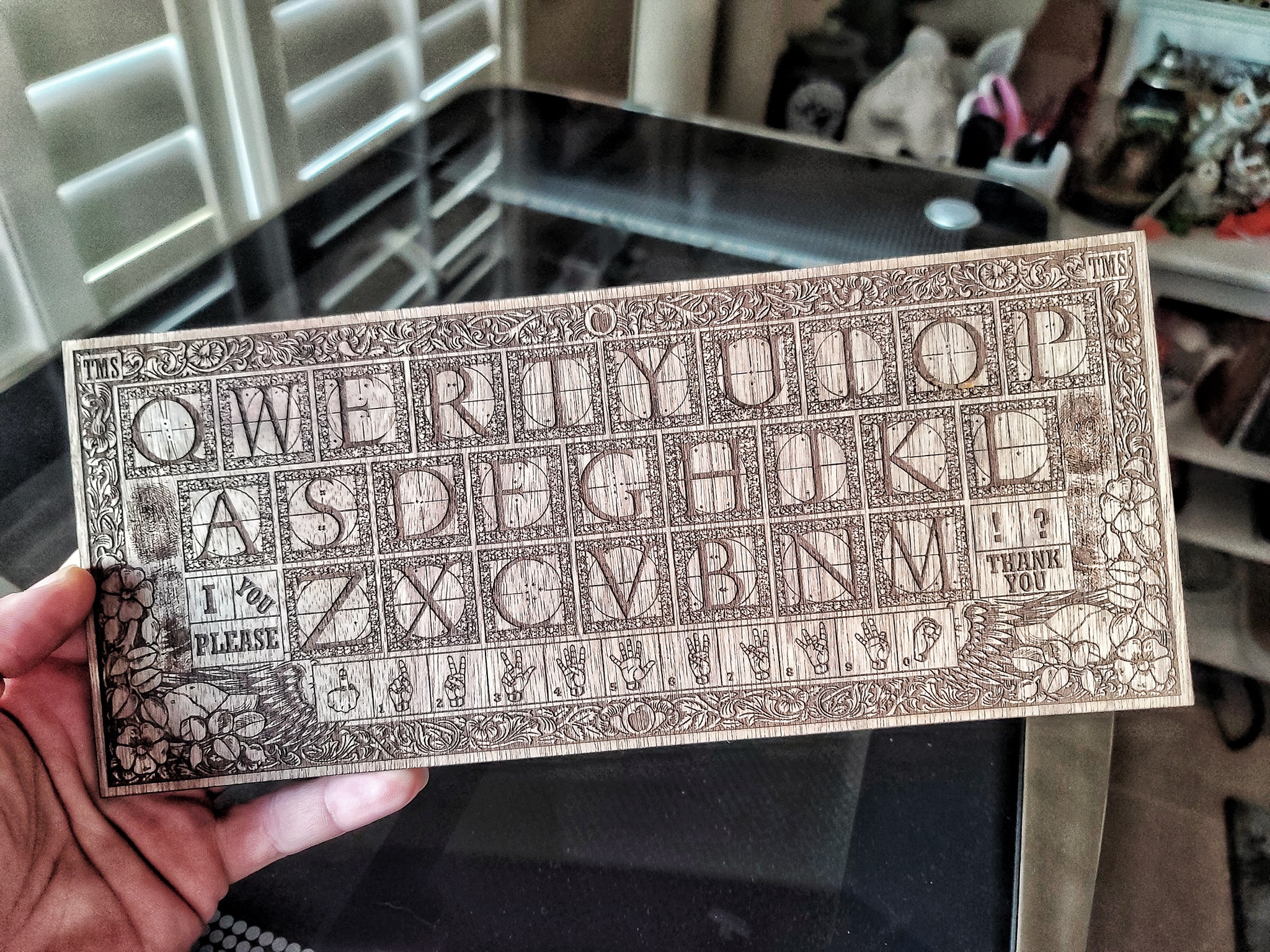 With 15 years of engraving experience I promise you absolutely the best product at the best prices. All of the items below and many more are available on our Etsy page. Keychains, plaques, ouija boards, signs or anything you can think up on your own in any size, color or subject is available to you. Laser engraved in a Glowforge Pro I can promise you nothing but the most detail and the absolute perfect fit for your home, wedding, engagement party, or that special gift for Father’s Day or Mother’s Day.